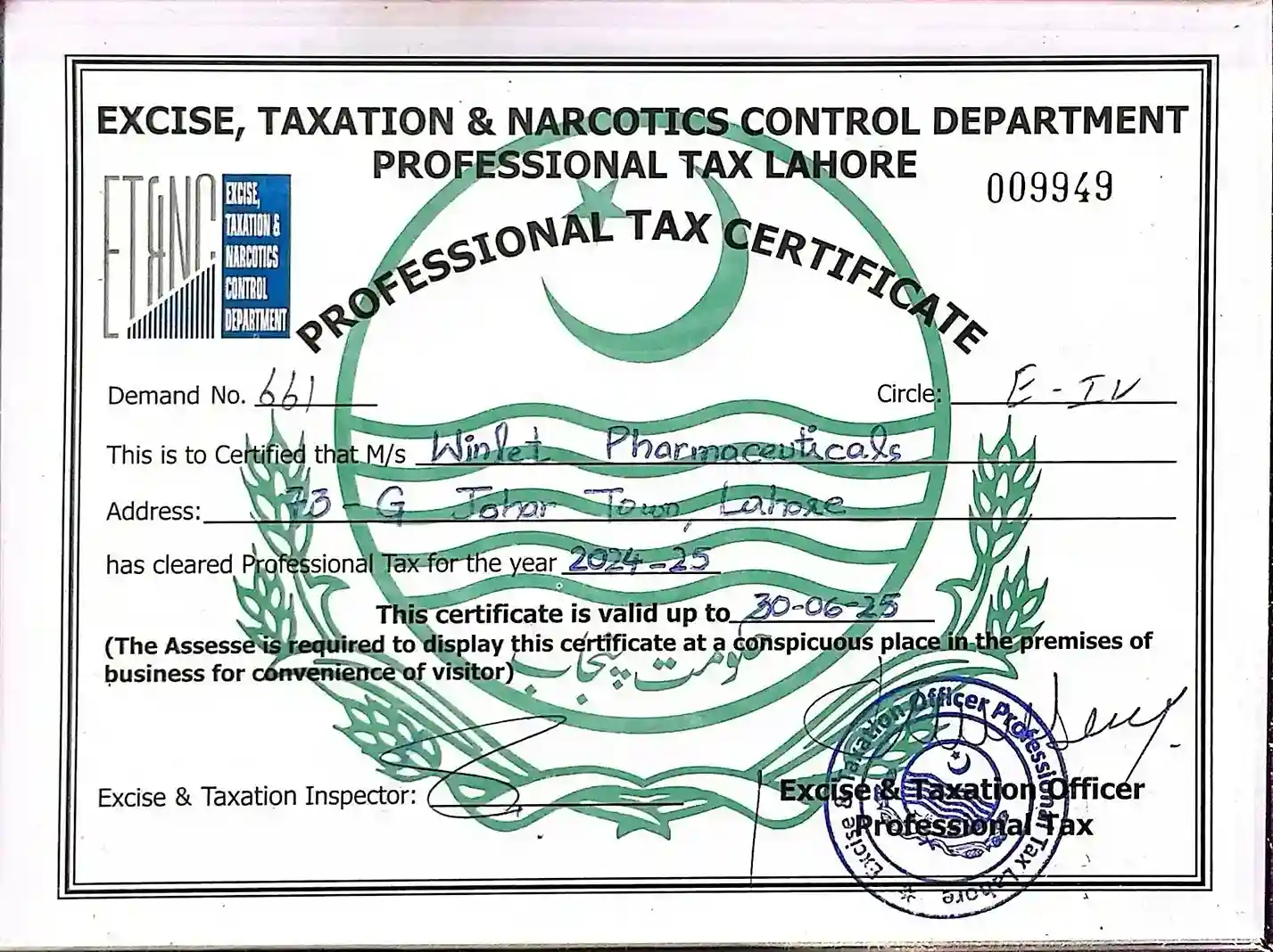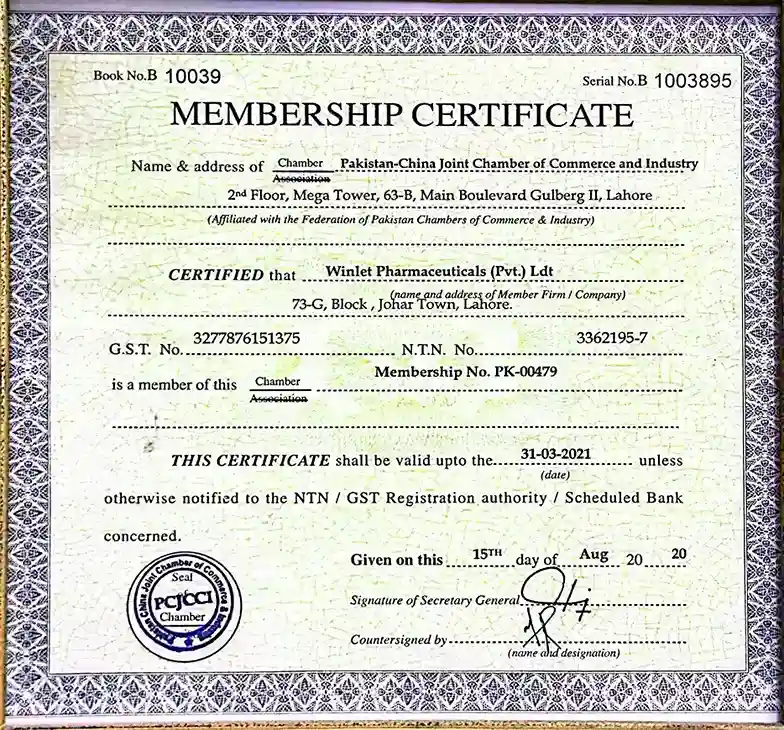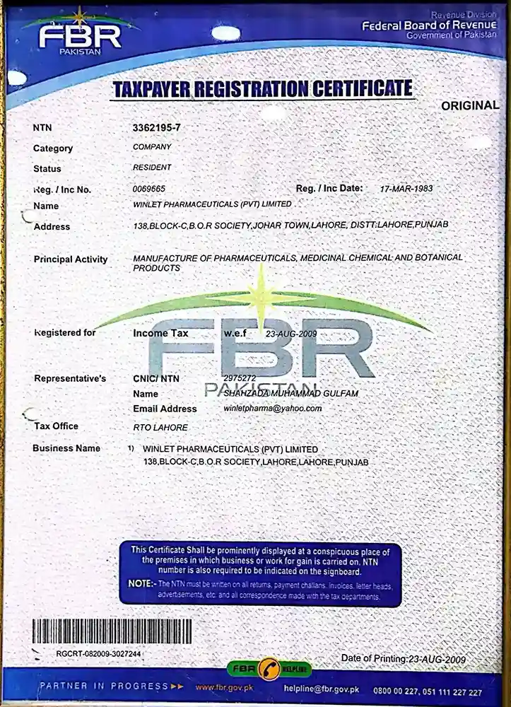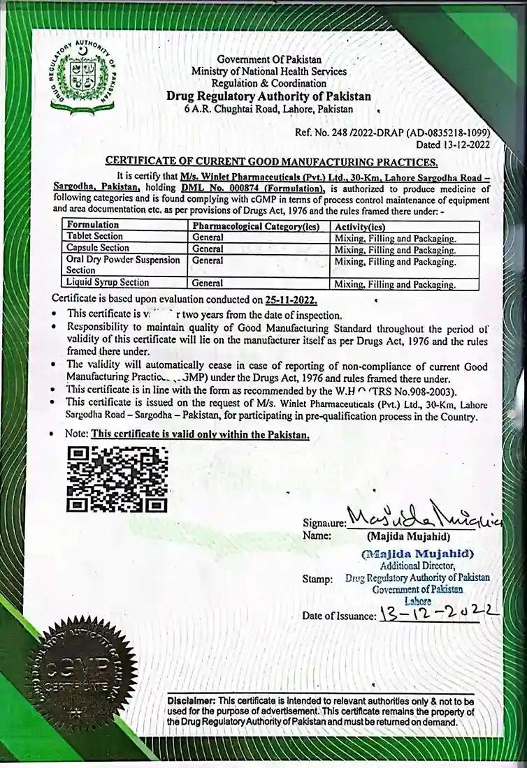 Winlet Pharma Certifications for Quality, Safety, and GMP Compliance