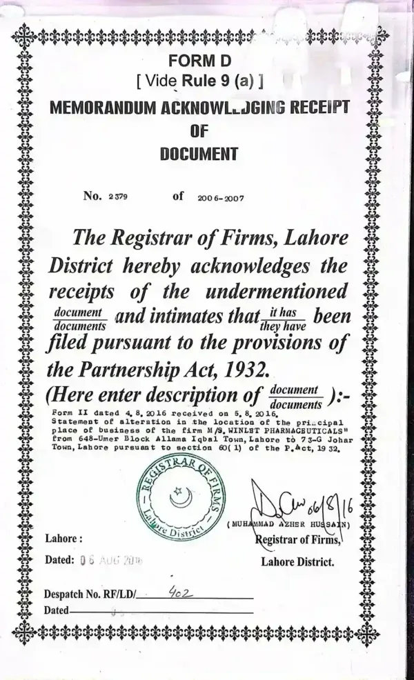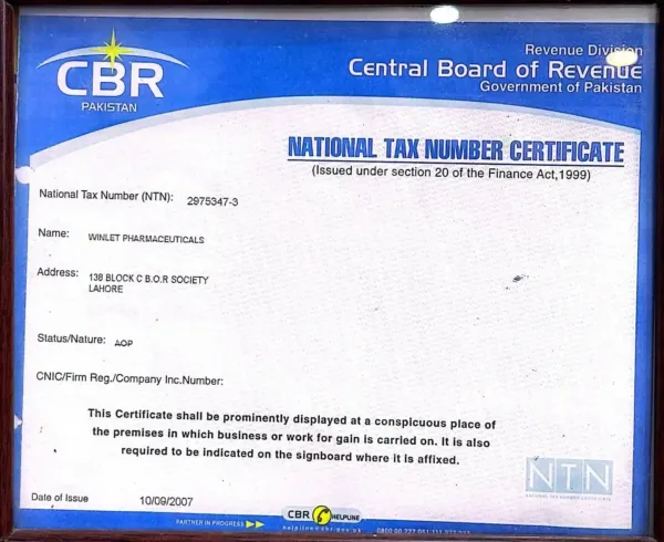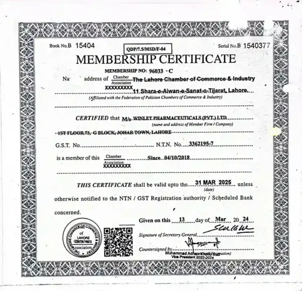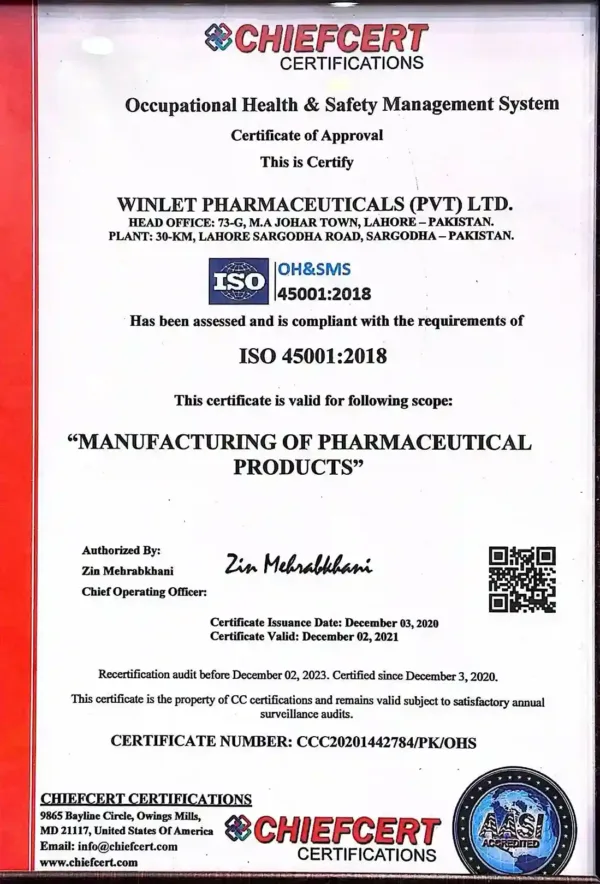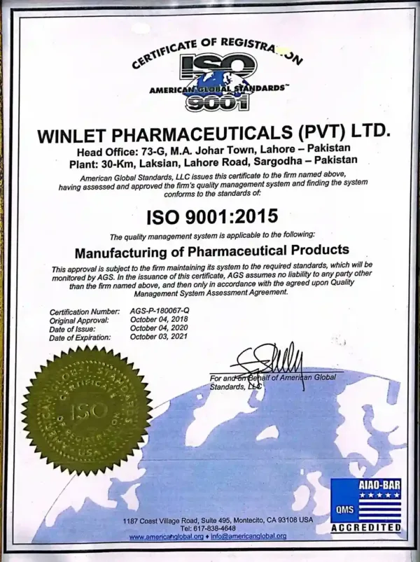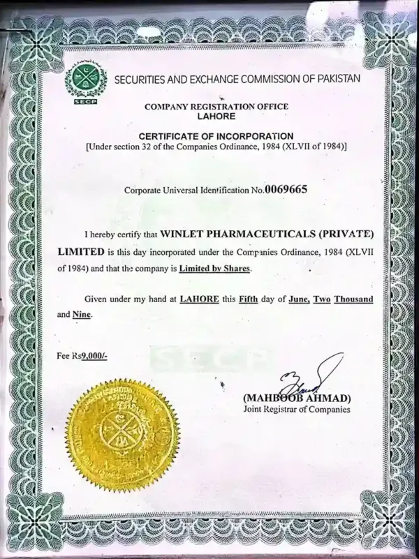 Winlet Pharma Certifications for Quality, Safety, and GMP Compliance